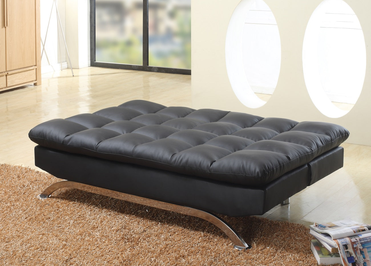 BLACK PU Futon Sofa Bed