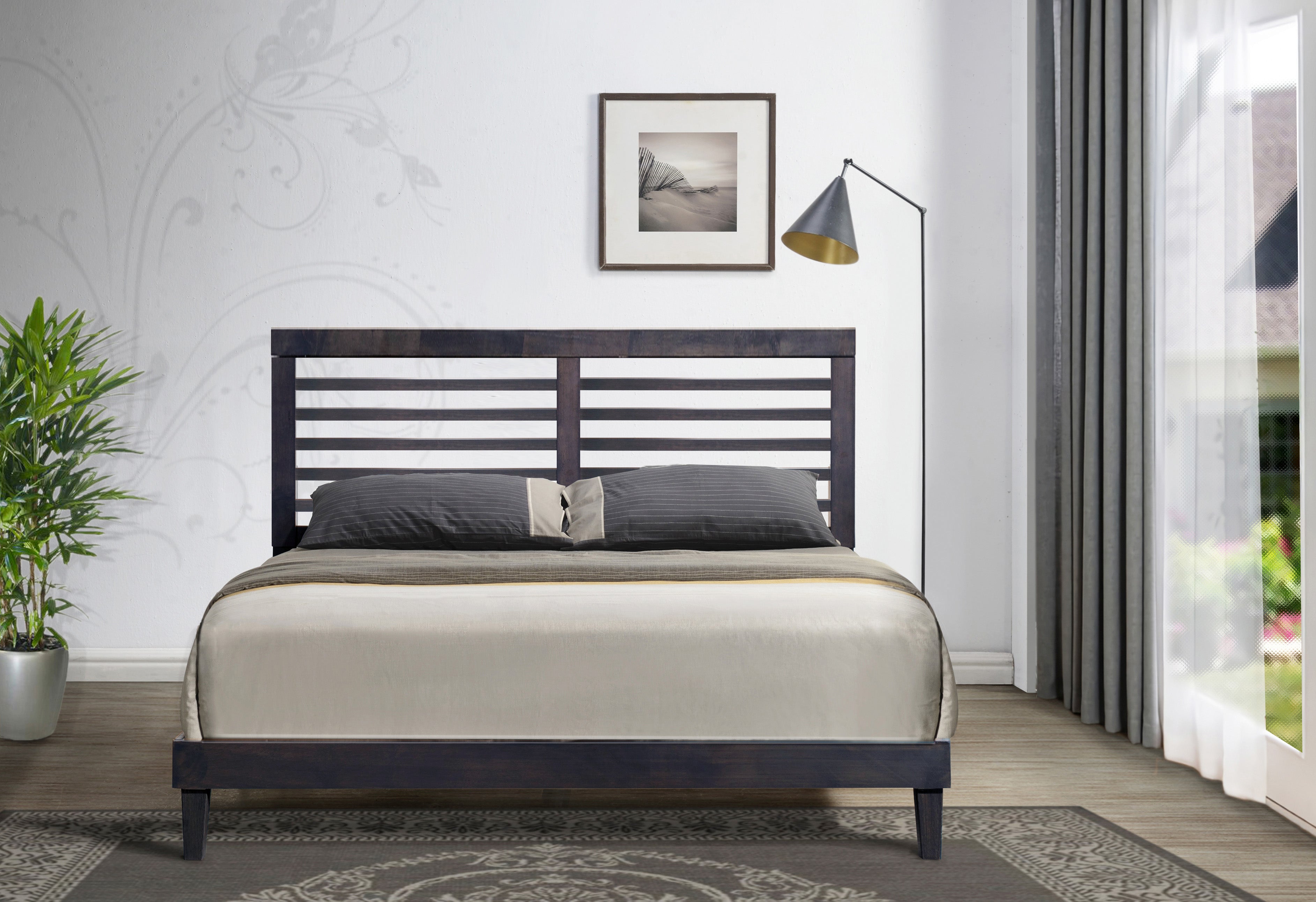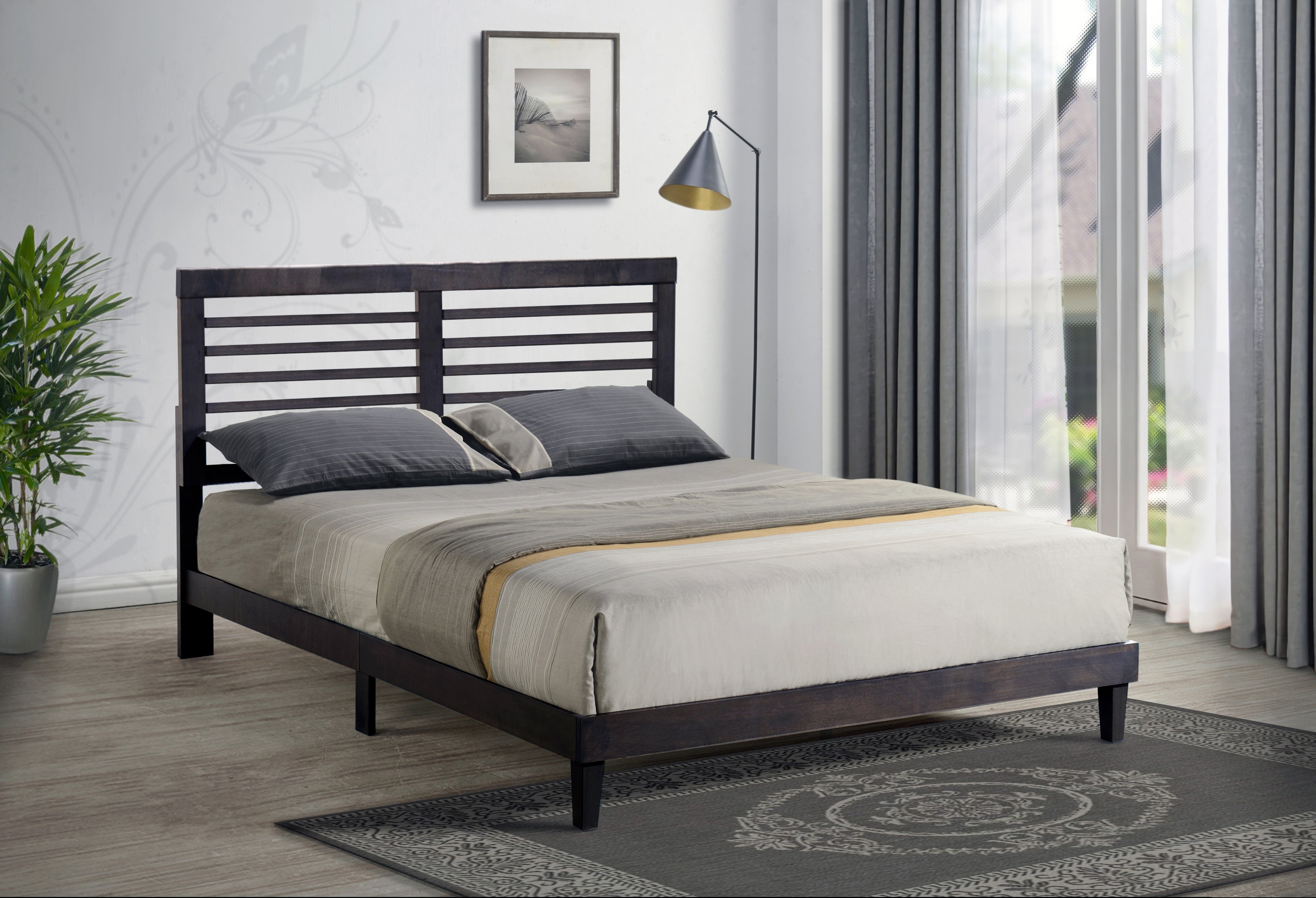 CAPPUCCINO Mid-Century Modern Wooden Platform Bed - QUEEN