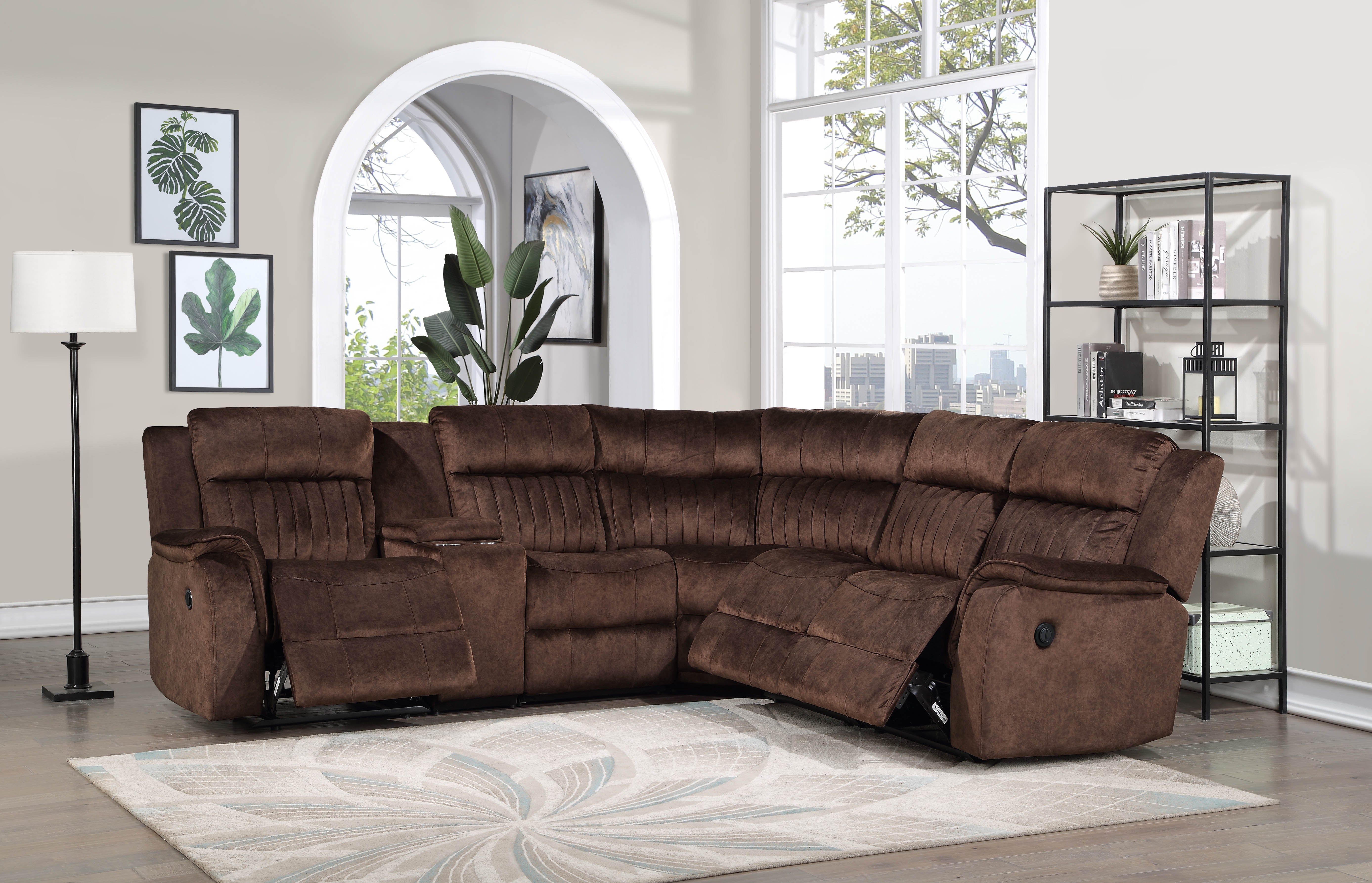 DARK BROWN Fabric Reversible Sectional Sofa Power Recliners